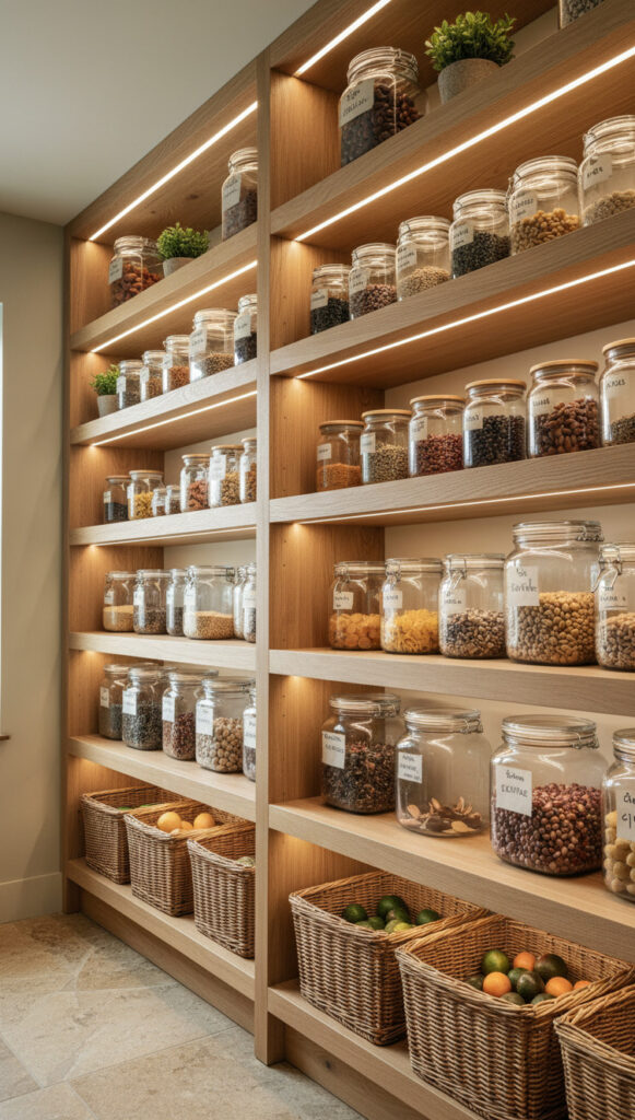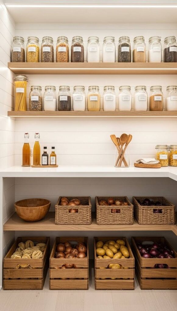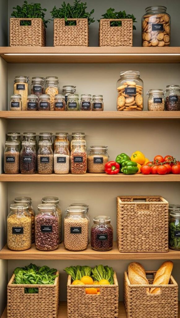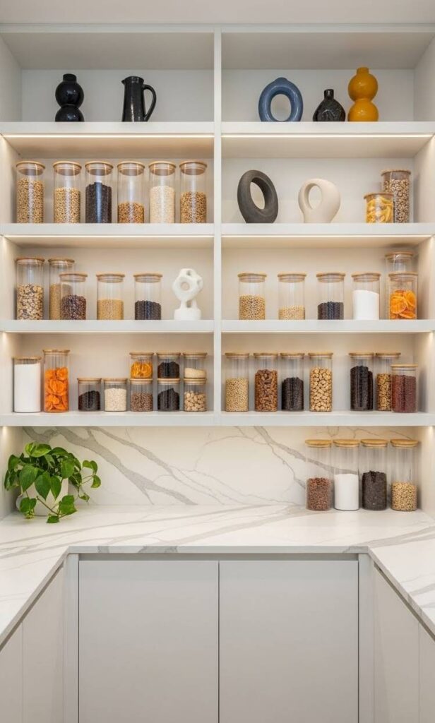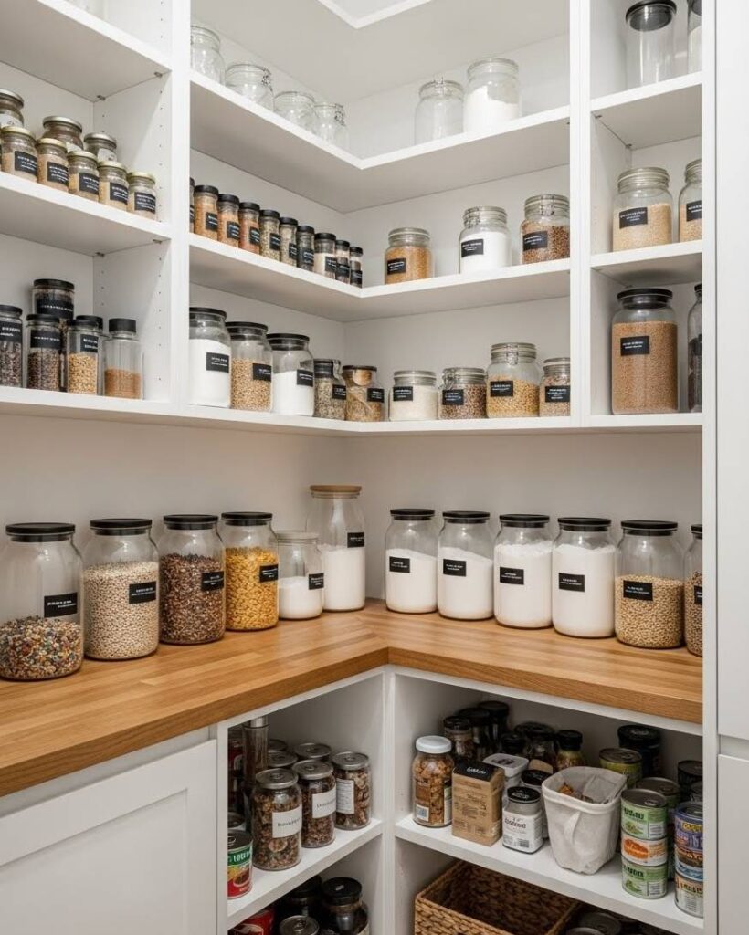 In aesthetic minimalist pantry ideas, labels are not just functional. They are a design element. The font matters.
