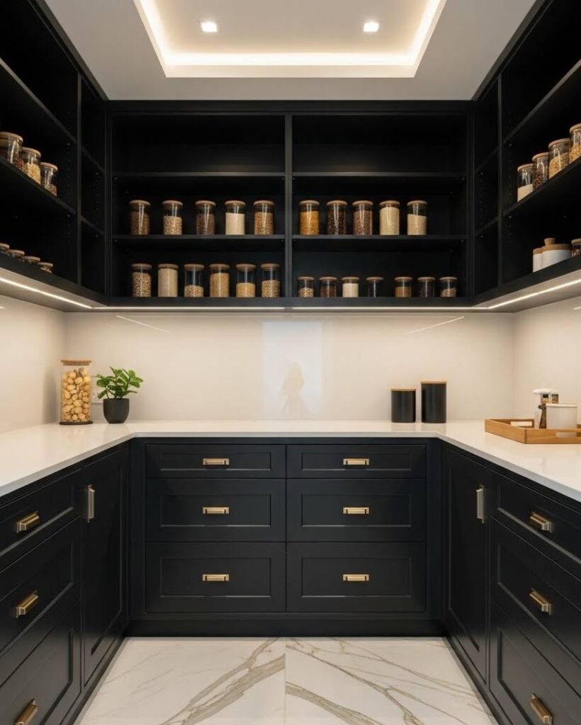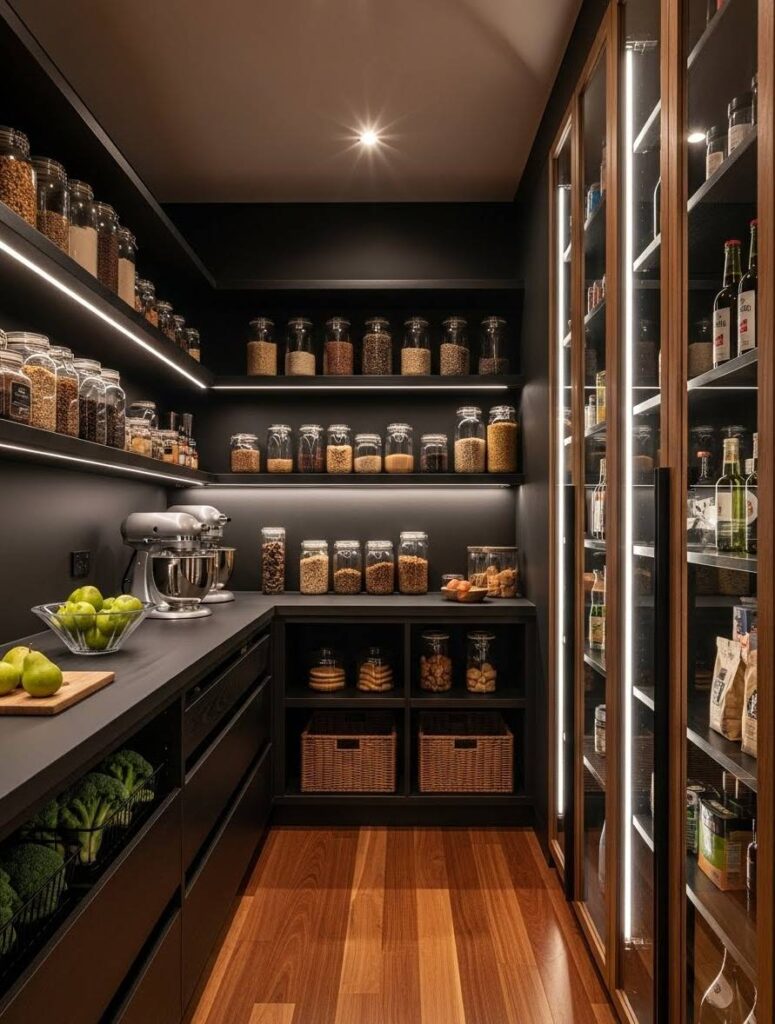 Paint is cheap. Painting the back wall of your pantry a dark color (like navy or charcoal) makes the white shelves pop. It adds depth for under $30.