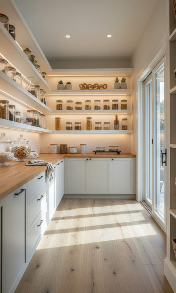 It mimics nature. It feels fresh. The light colors bounce light around, making small pantries feel larger.