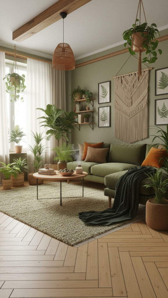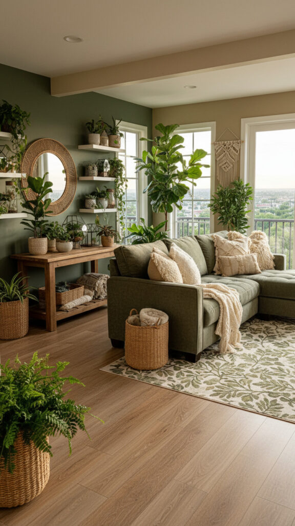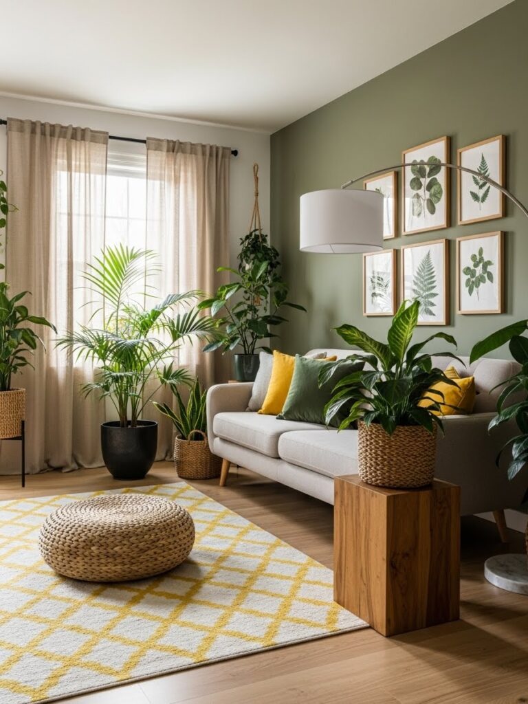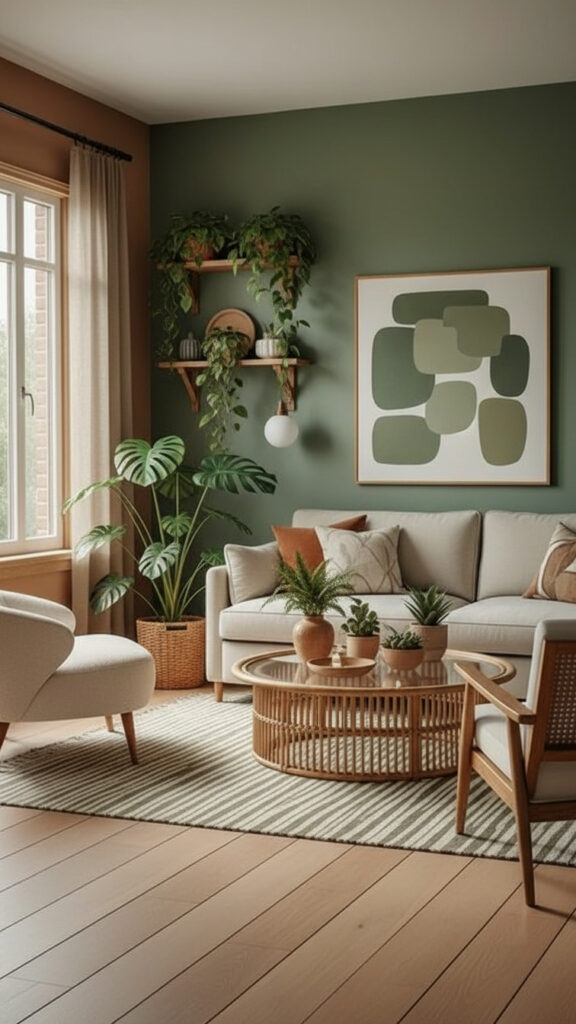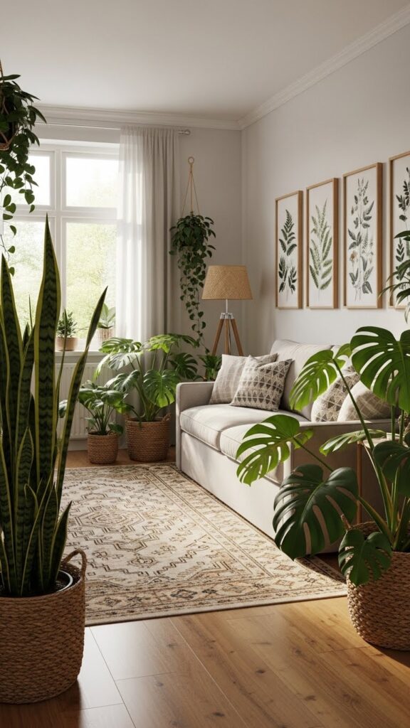 Nothing defines biophilic living room designs quite like a vertical garden. It turns a wall into a living organism.