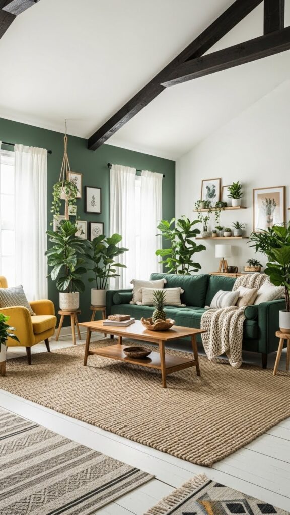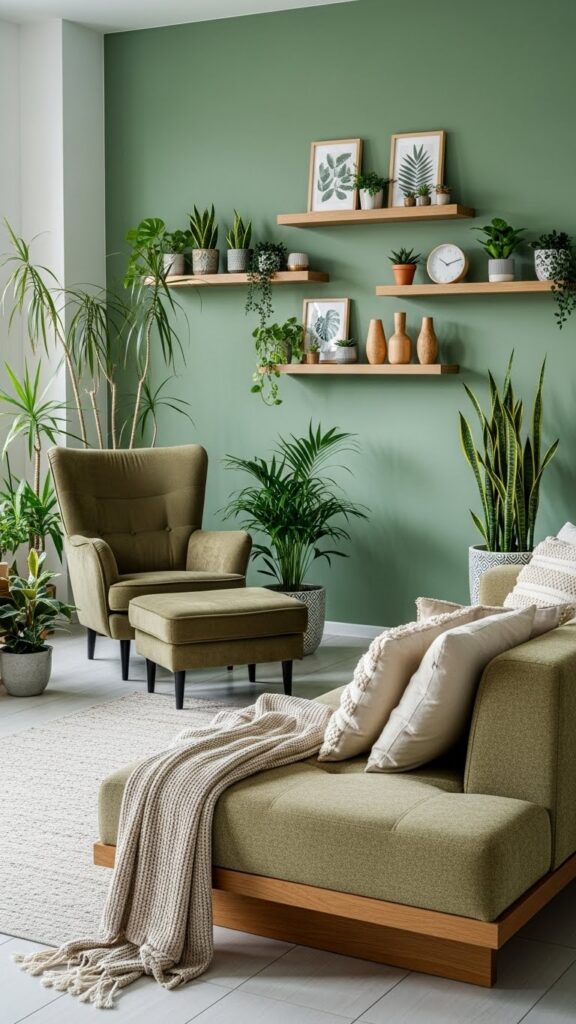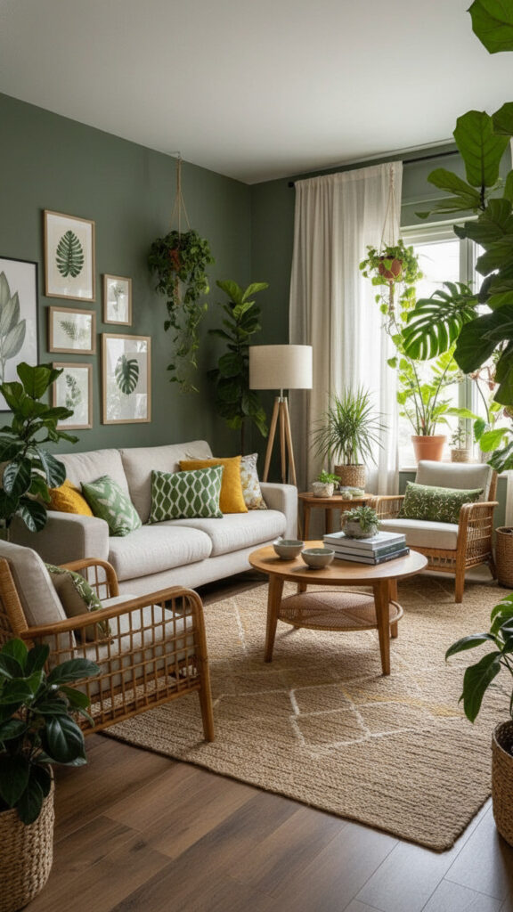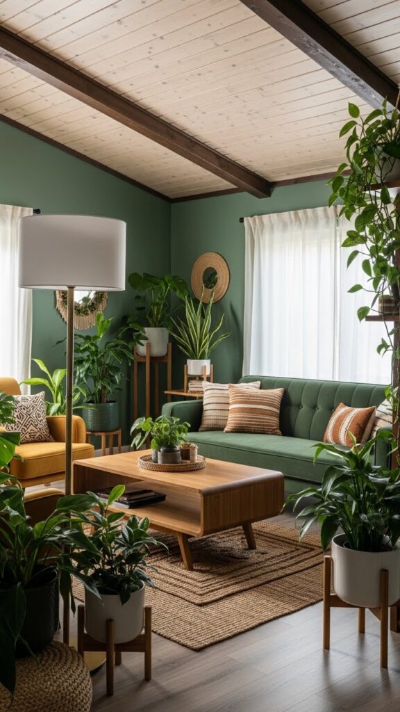 Paint the walls dark green. Use velvet upholstery to mimic the softness of moss. Layer tall plants like Palms and Ficus to create a “canopy” overhead.