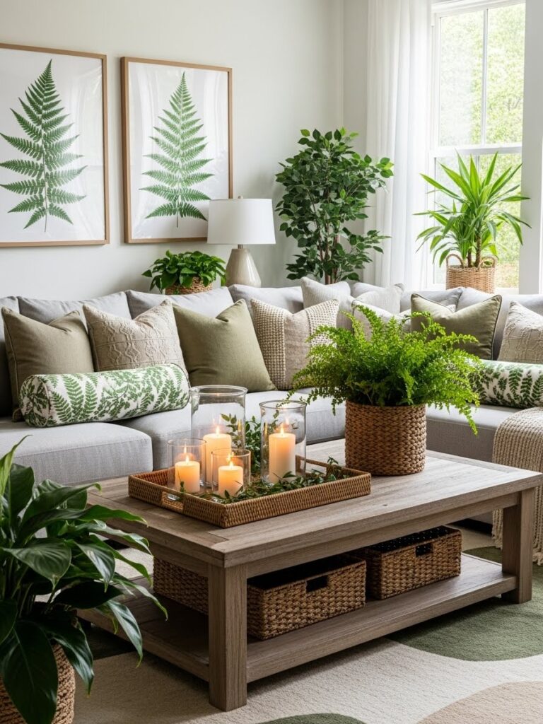 A forest has clearings. Your living room needs them too. Do not clutter every surface with plants.