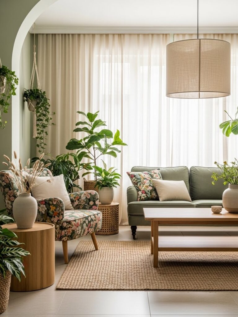 Nature changes with the seasons. Your biophilic living room designs should evolve too.