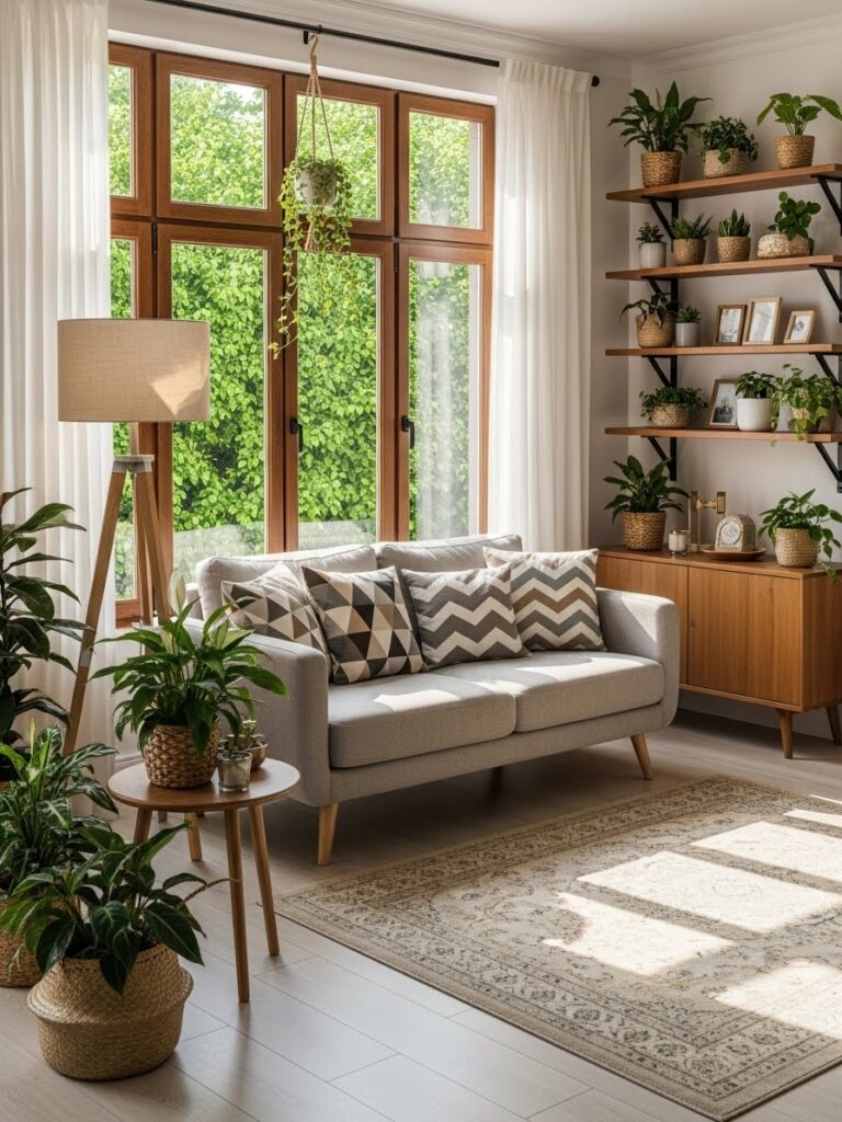 Keep the walls white to maximize light reflection. Use light wood furniture with clean lines. Add plants as sculptural elements rather than a jungle.