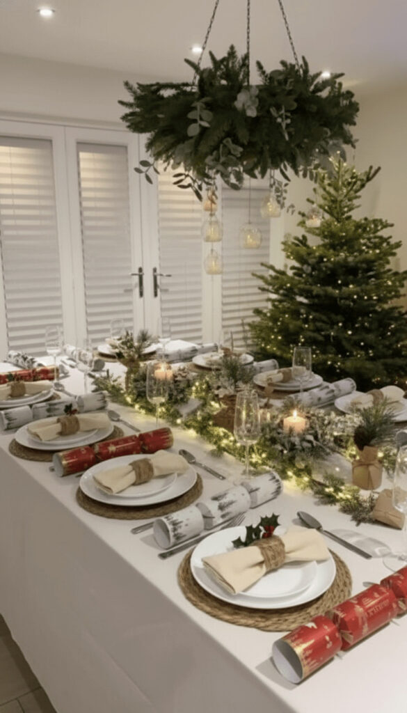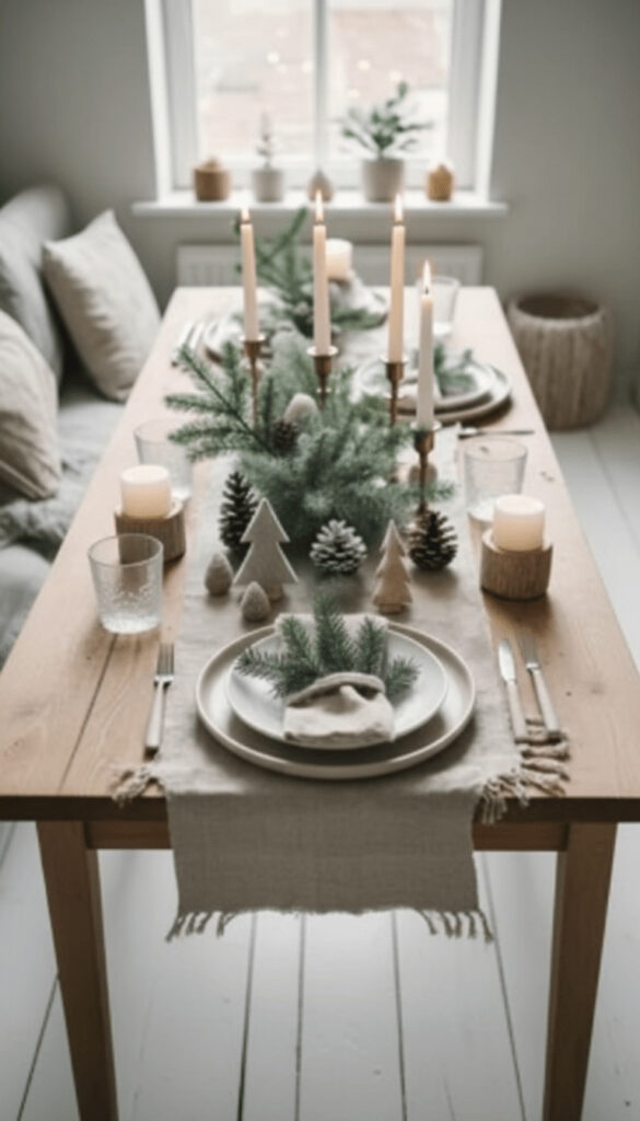 Modern Christmas table designs often favor minimalism. The Scandinavian style focuses on simplicity and nature. It avoids clutter and bright, flashy colors.