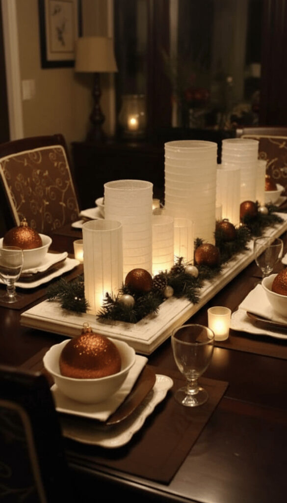Lanterns add a structured, cozy feel. They protect the candle flame and look stylish. They work well for rustic table decor.