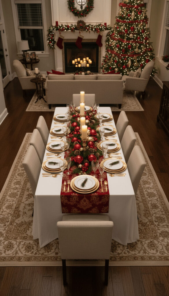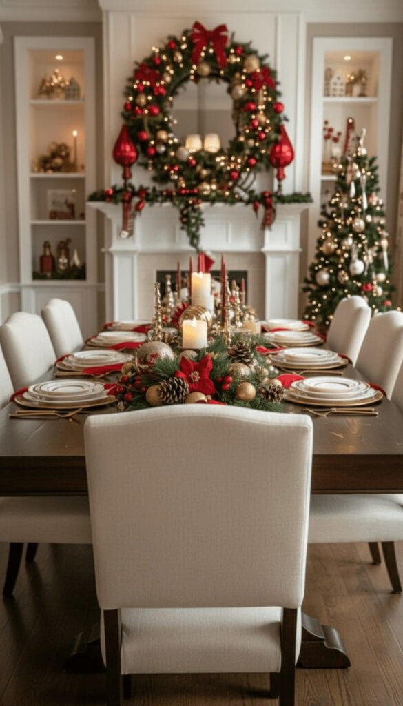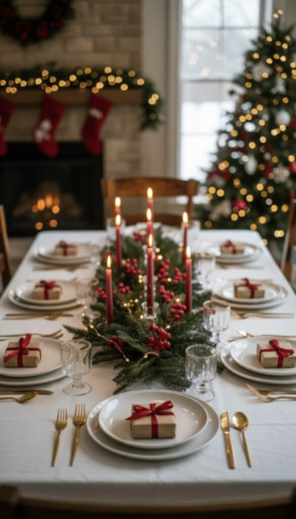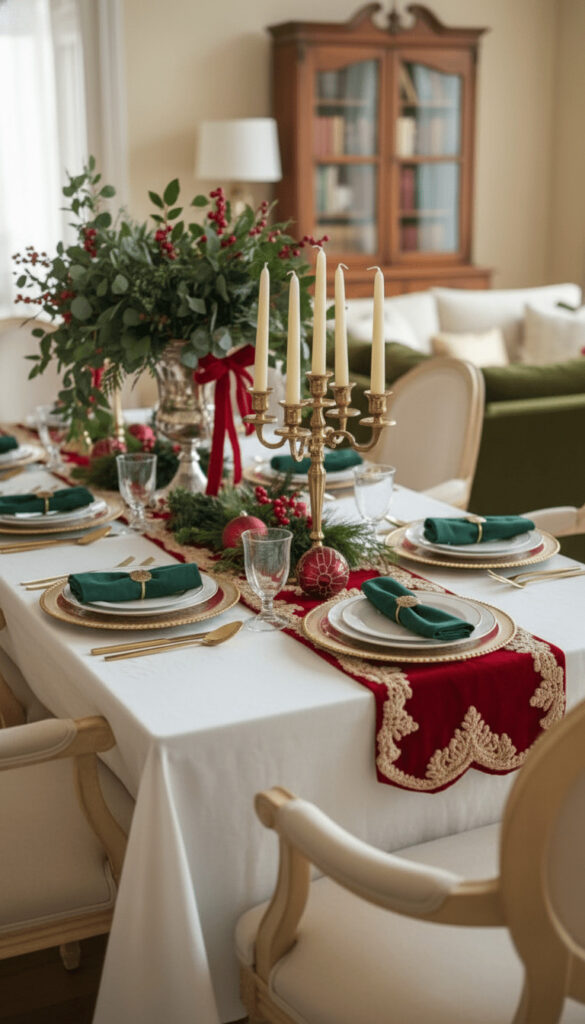 Embrace tradition with classic red and green Christmas table decor ideas. This style is nostalgic and instantly recognizable. It creates a warm and cheerful atmosphere for guests.
