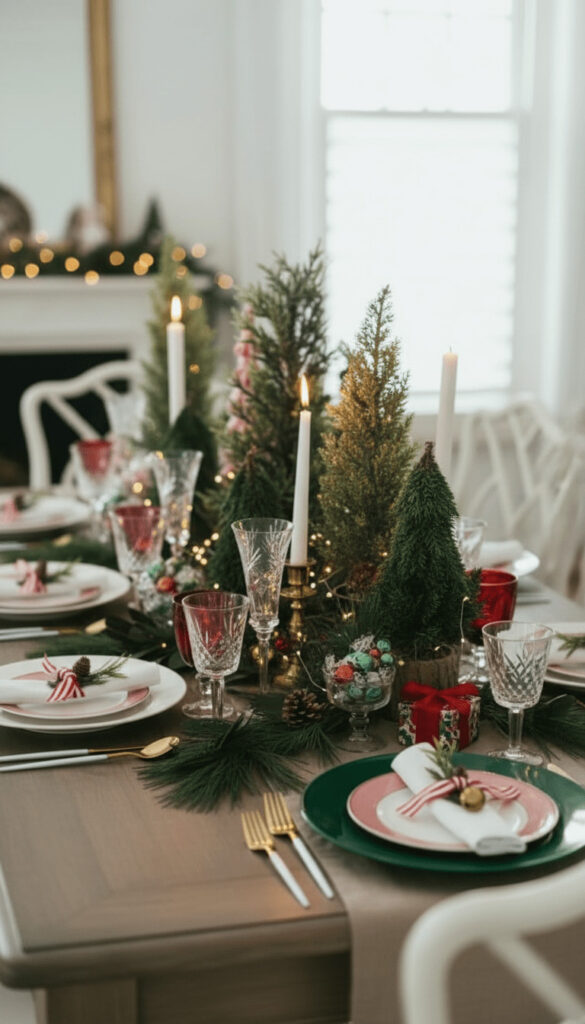 You can also put a tiny tree at each place setting. This serves as a cute party favor. It brings the holiday spirit to every guest.