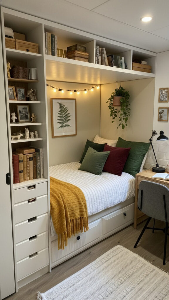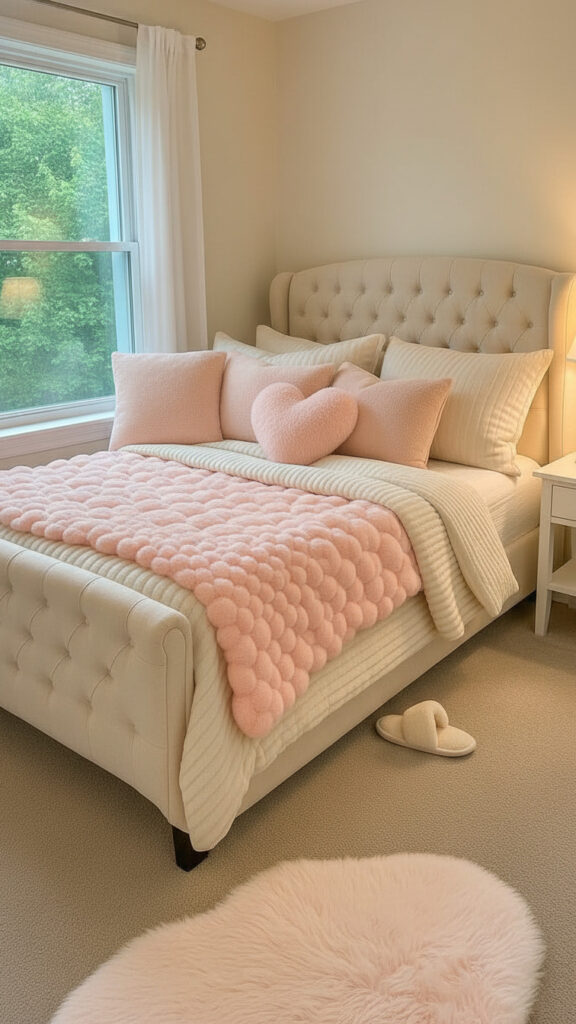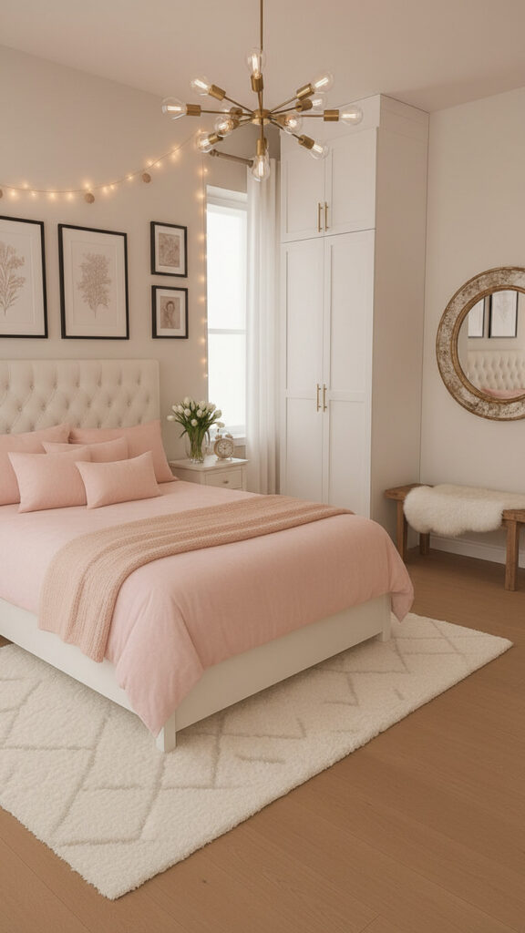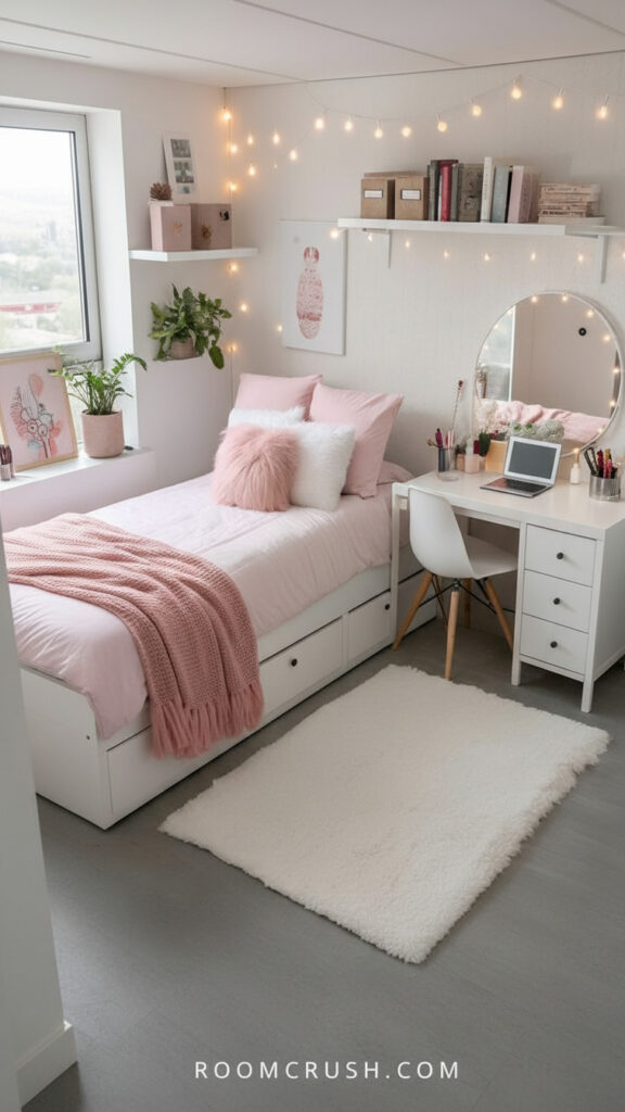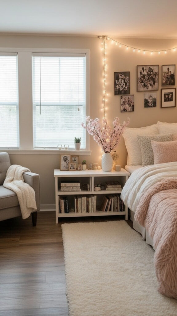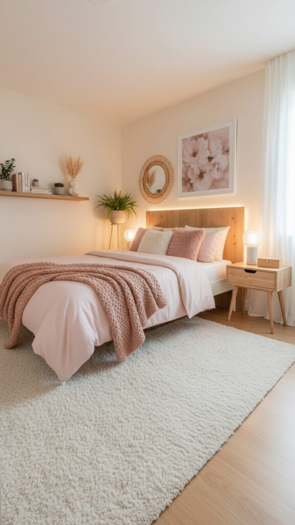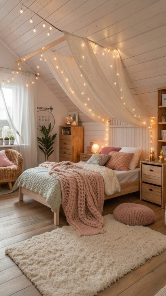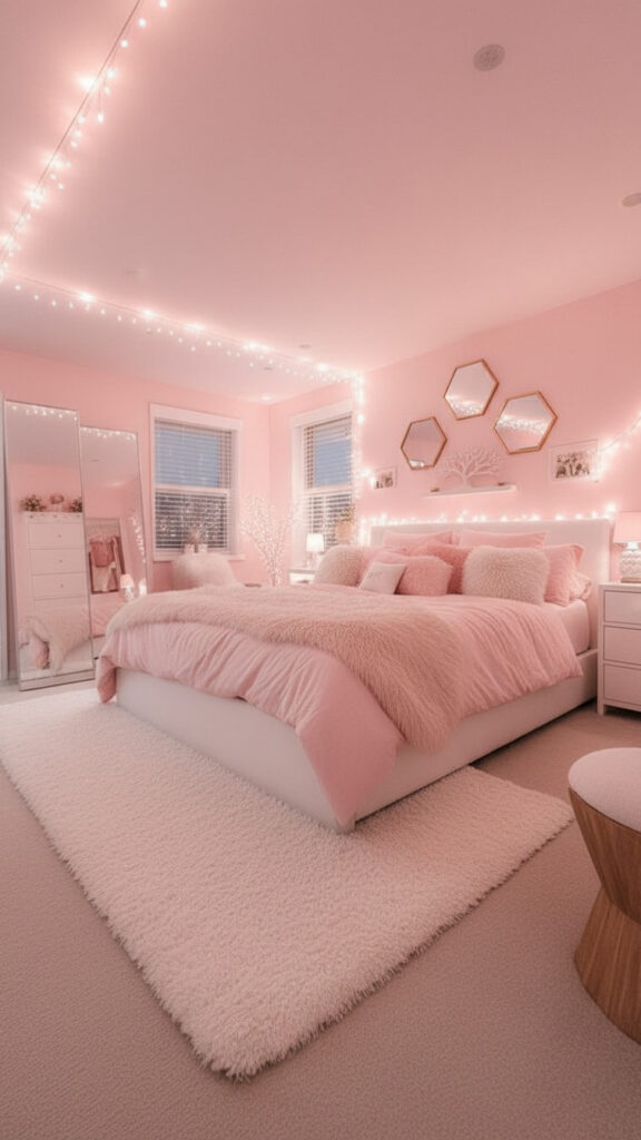 Choose warm white bulbs for a cozy feel. For a fun twist, use color-changing LEDs. This is one of the most affordable cute bedroom ideas.