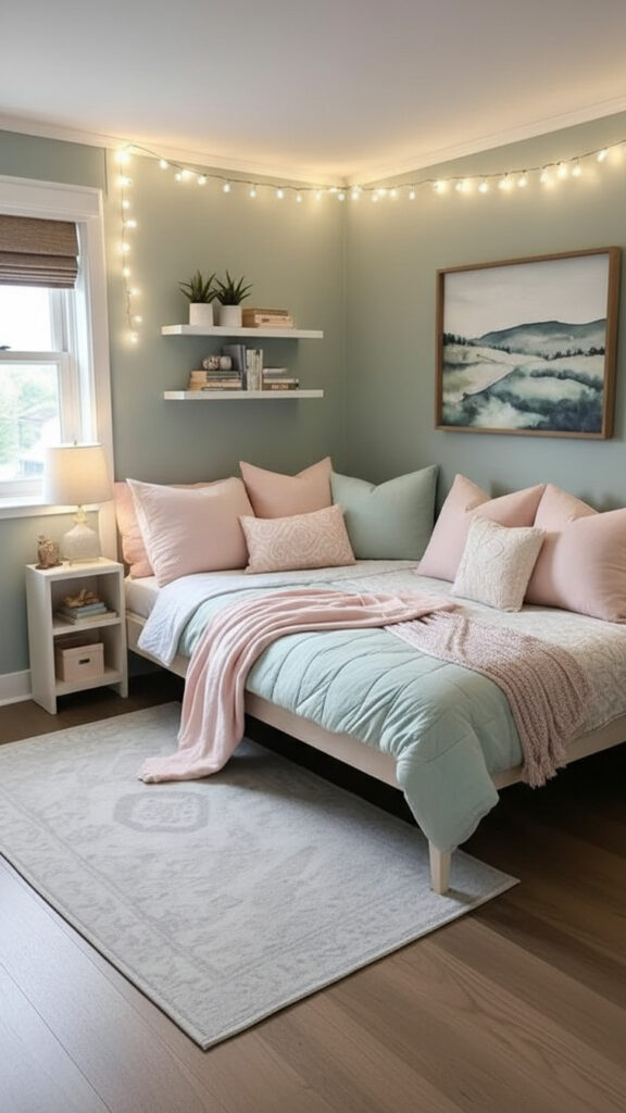 Using a pastel color palette is a classic way to achieve a cute look. These soft hues are calming and cheerful. They make a small room feel bright and airy.
