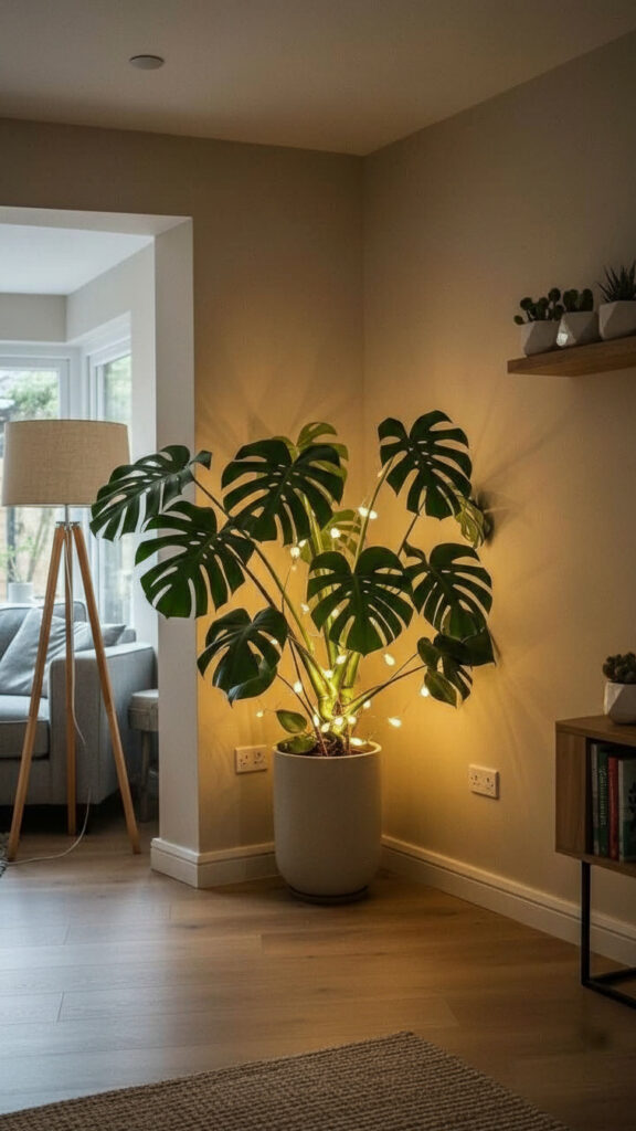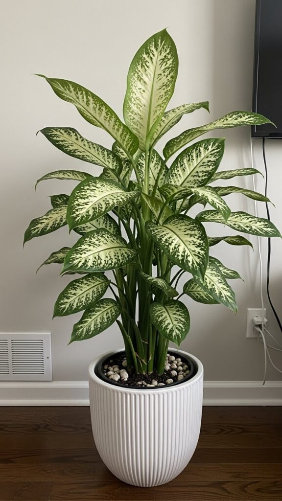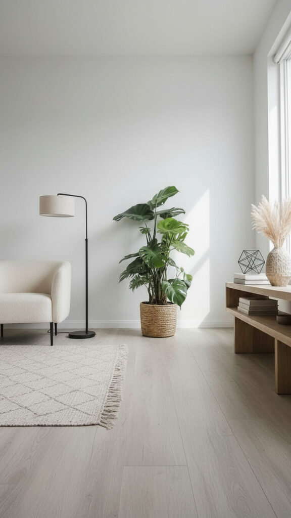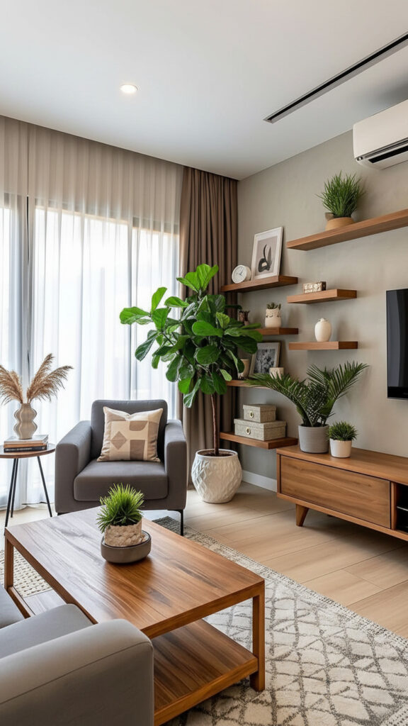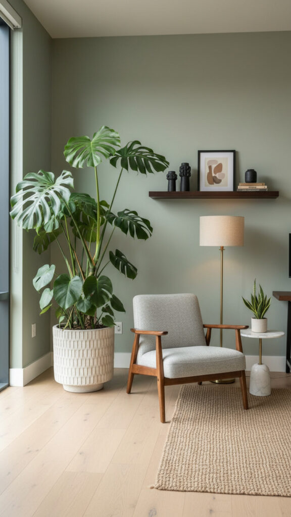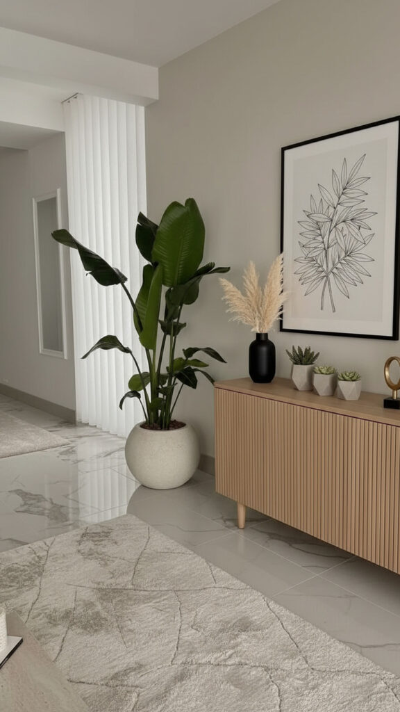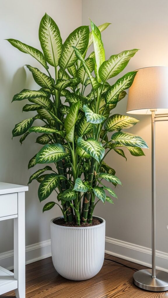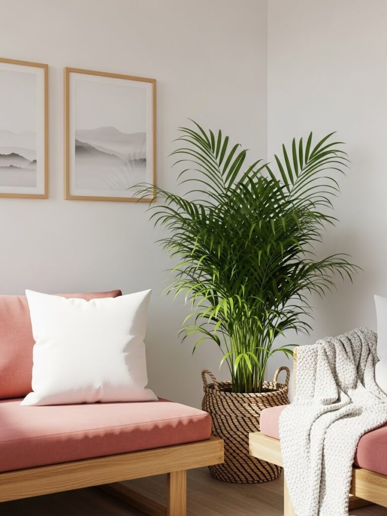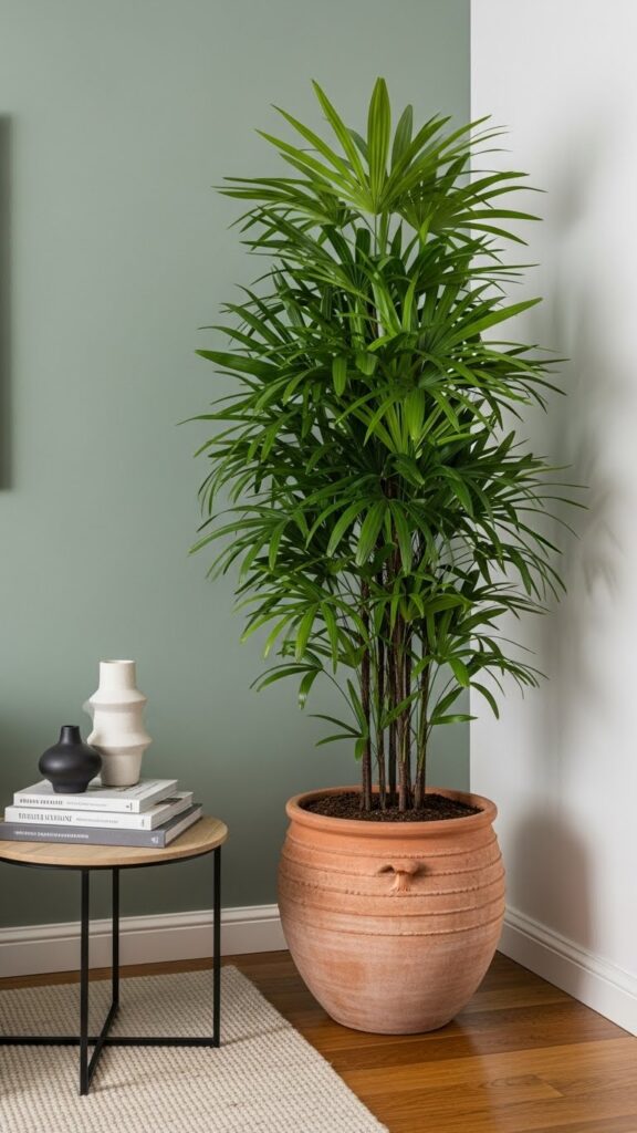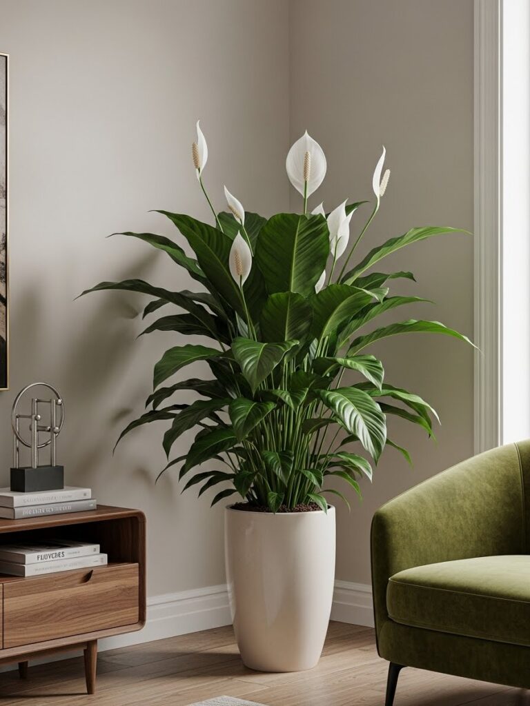 A tall plant draws the eye upward. It makes a room feel taller. It fills the “dead space” in corners that furniture cannot fill.