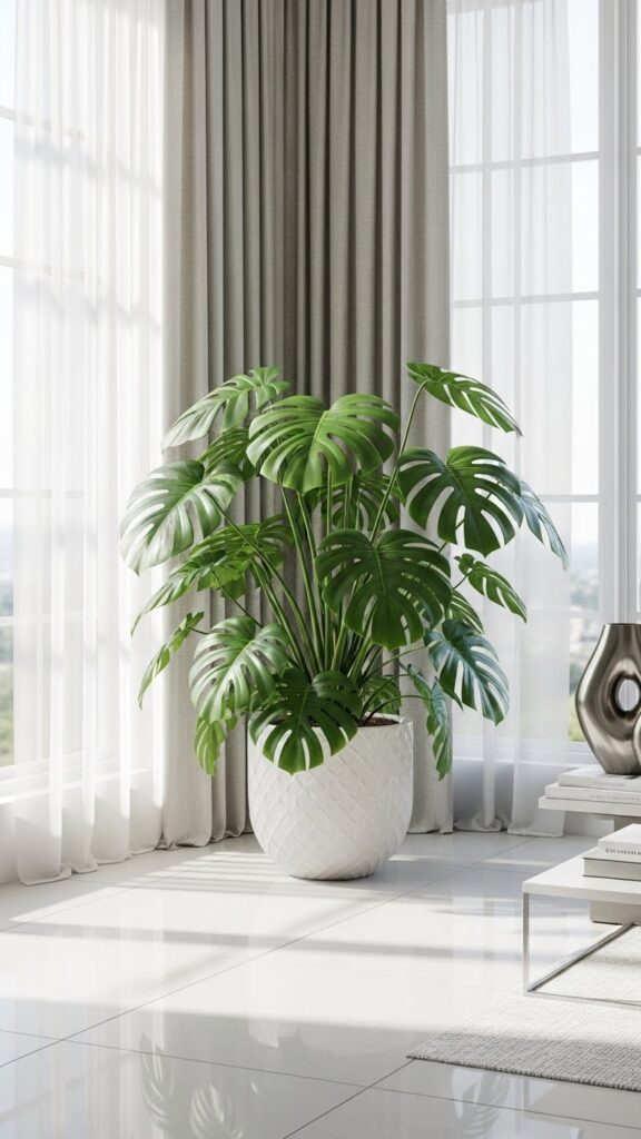 The “Swiss Cheese Plant” is iconic. While it is a vine, it can be trained to grow vertically on a moss pole.