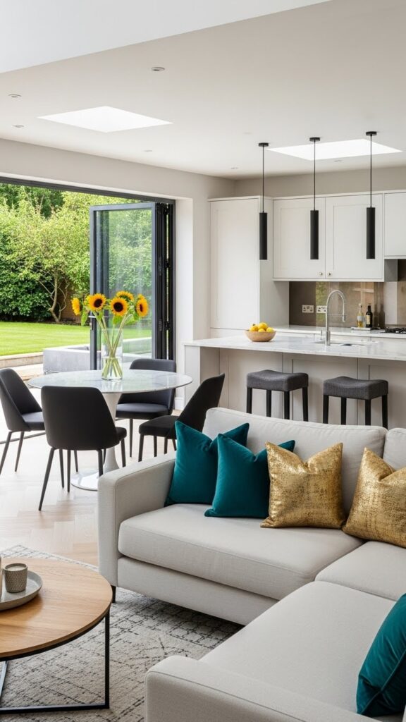 An open plan makes your home feel significantly larger. It floods the space with natural light. You can keep an eye on kids while preparing meals.