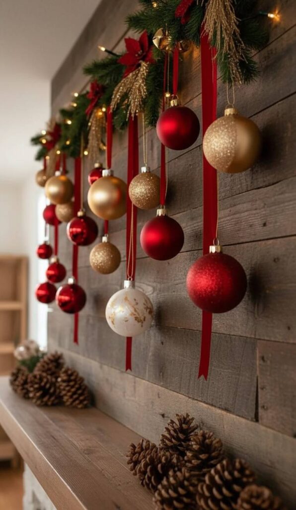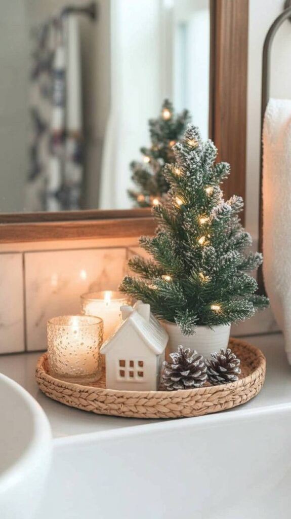You can also hang a small wreath from a ribbon in the center. This draws the eye to the mirror. It adds a festive layer without blocking the reflection.