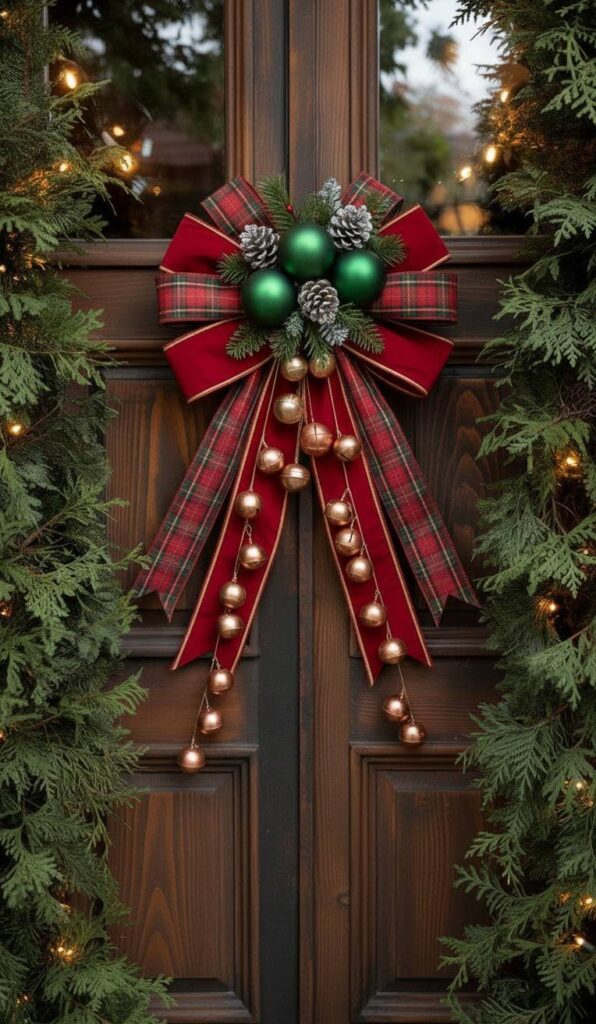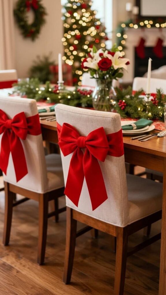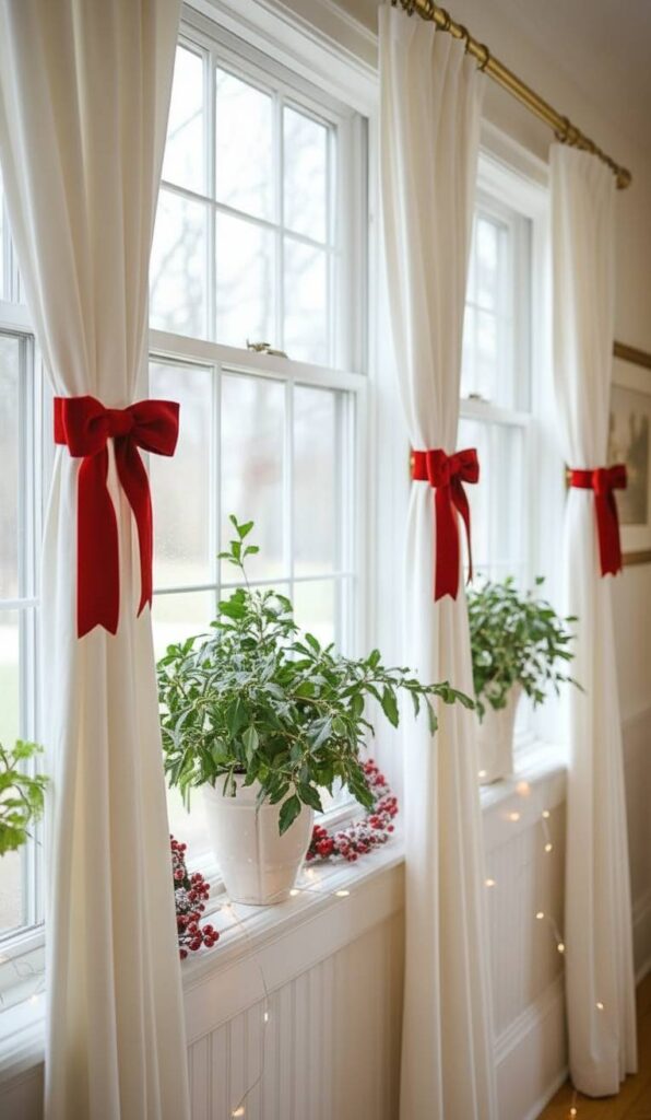 Tie bows around your candlesticks. Add a ribbon to your wreaths or garlands. You can even tie bows on the branches of your tree.