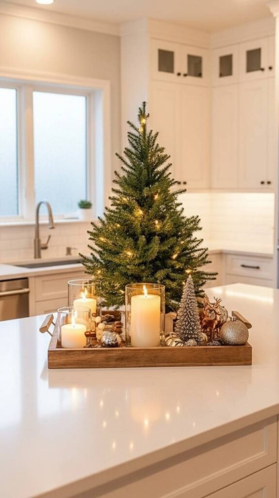 A bowl of red apples or pomegranates adds natural color. These small touches make the heart of the home feel festive. It keeps the workspace functional.