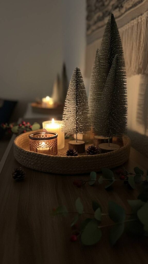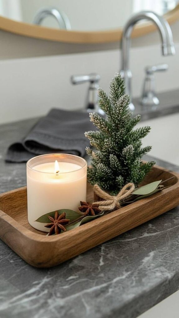 This is better than artificial candles. It creates a cozy, humid atmosphere. It is a sensory layer of your simple Christmas decor ideas.