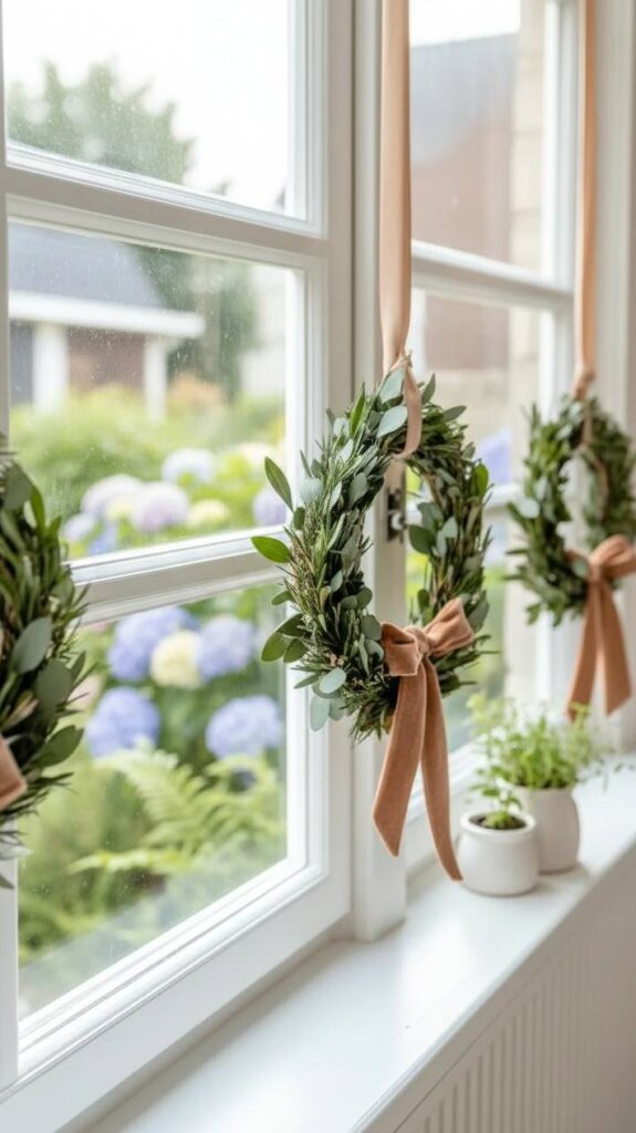 Extend the charm to the outside of your home. Hang matching wreaths on your exterior windows. This creates a classic and cohesive curb appeal.