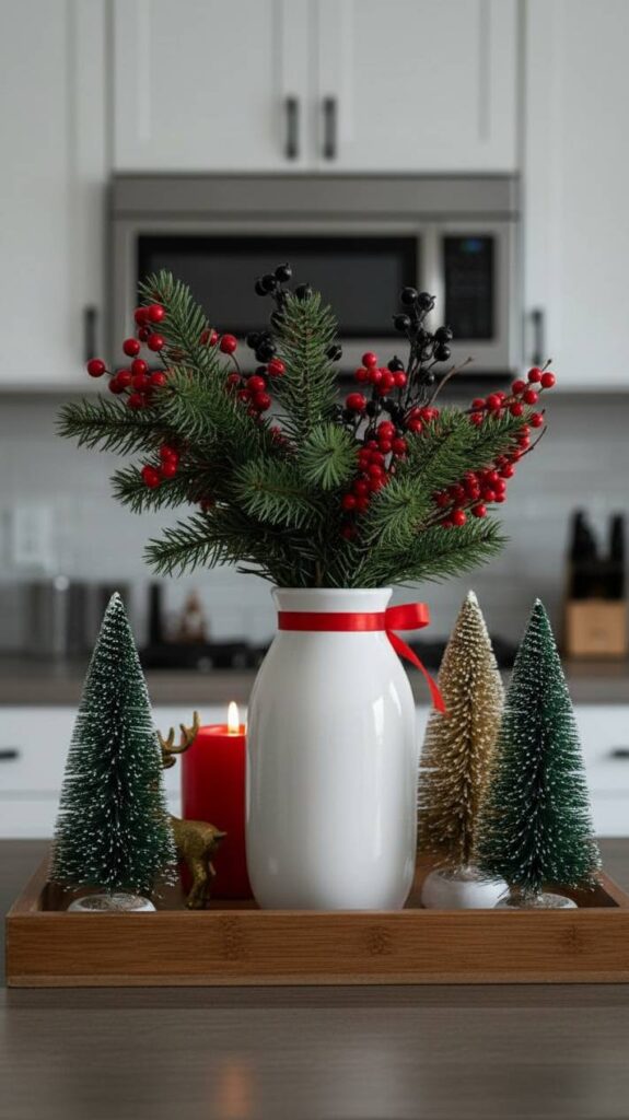 Do not forget the kitchen. Simple Christmas decor ideas work well here too. You do not need to clutter your countertops to be festive.