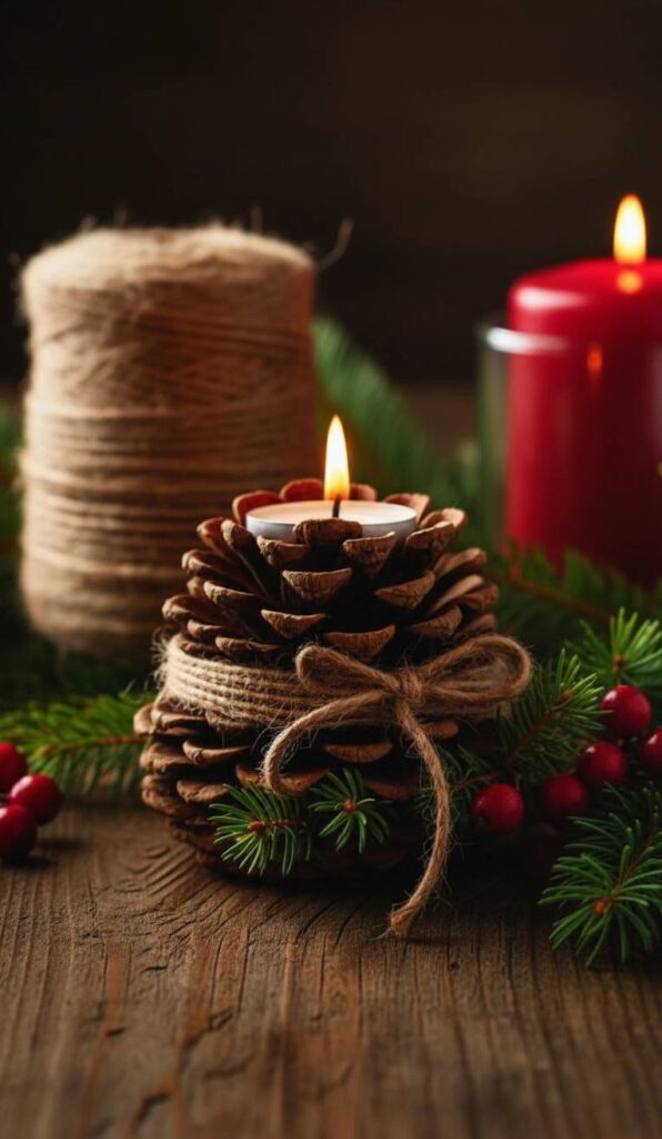 Foraging for natural greenery is the best free option. DIY Christmas decorations like paper stars and dried orange garlands are very cheap. Utilizing items you already own, like glass jars and books, also saves money.