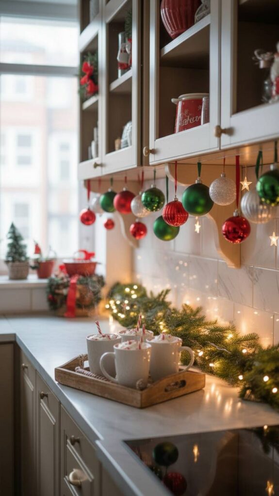 A bowl of red apples or pomegranates adds natural color. These small touches make the heart of the home feel festive. It keeps the workspace functional.