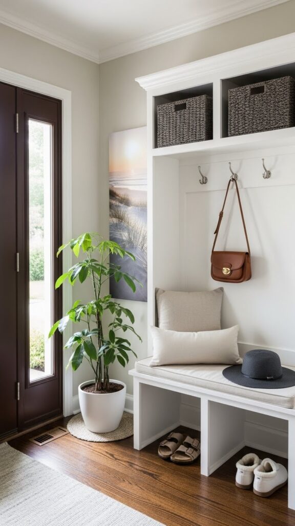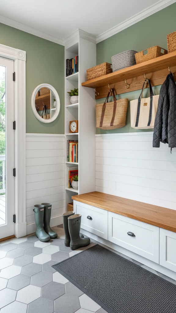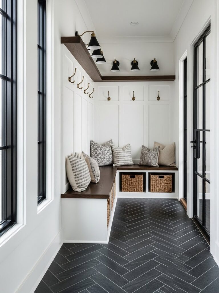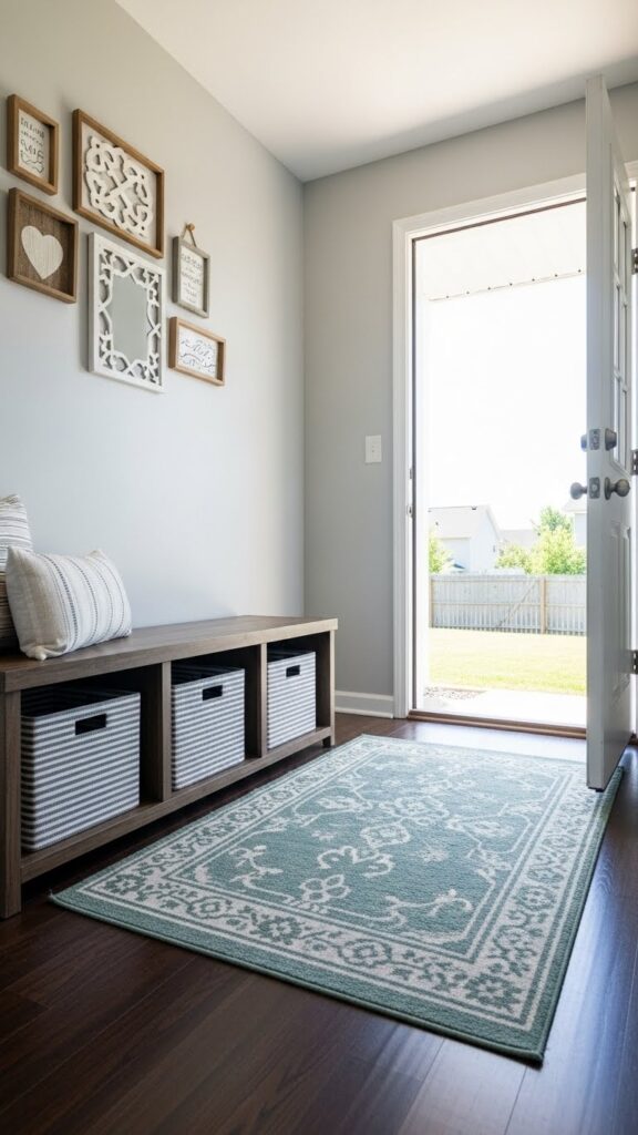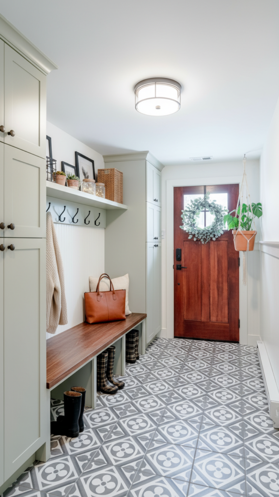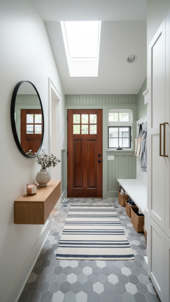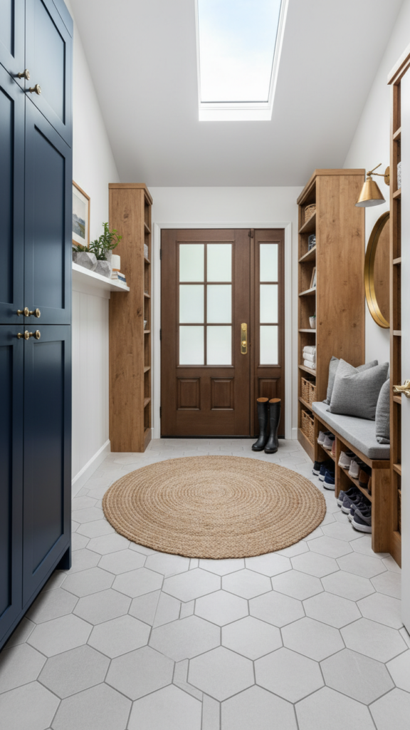 If you are renovating, consider using a different flooring material for the entryway “pad.” A hexagon tile or a bold patterned ceramic creates a designated “mudroom” area that is durable and easy to clean. This visual break from the living room’s hardwood or carpet defines the entry zone without the need for walls.