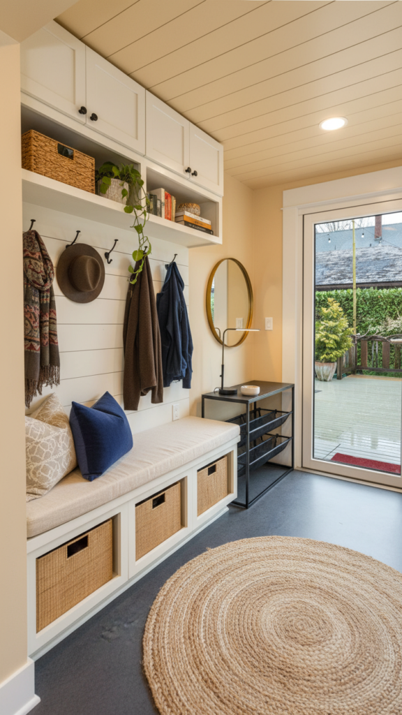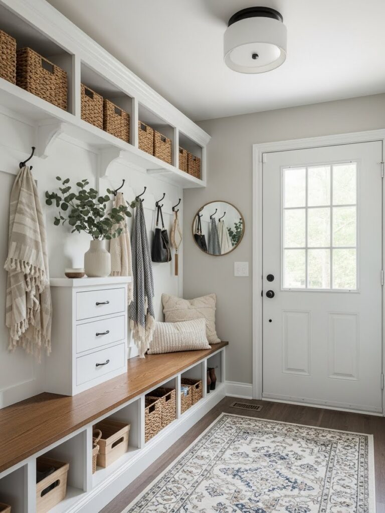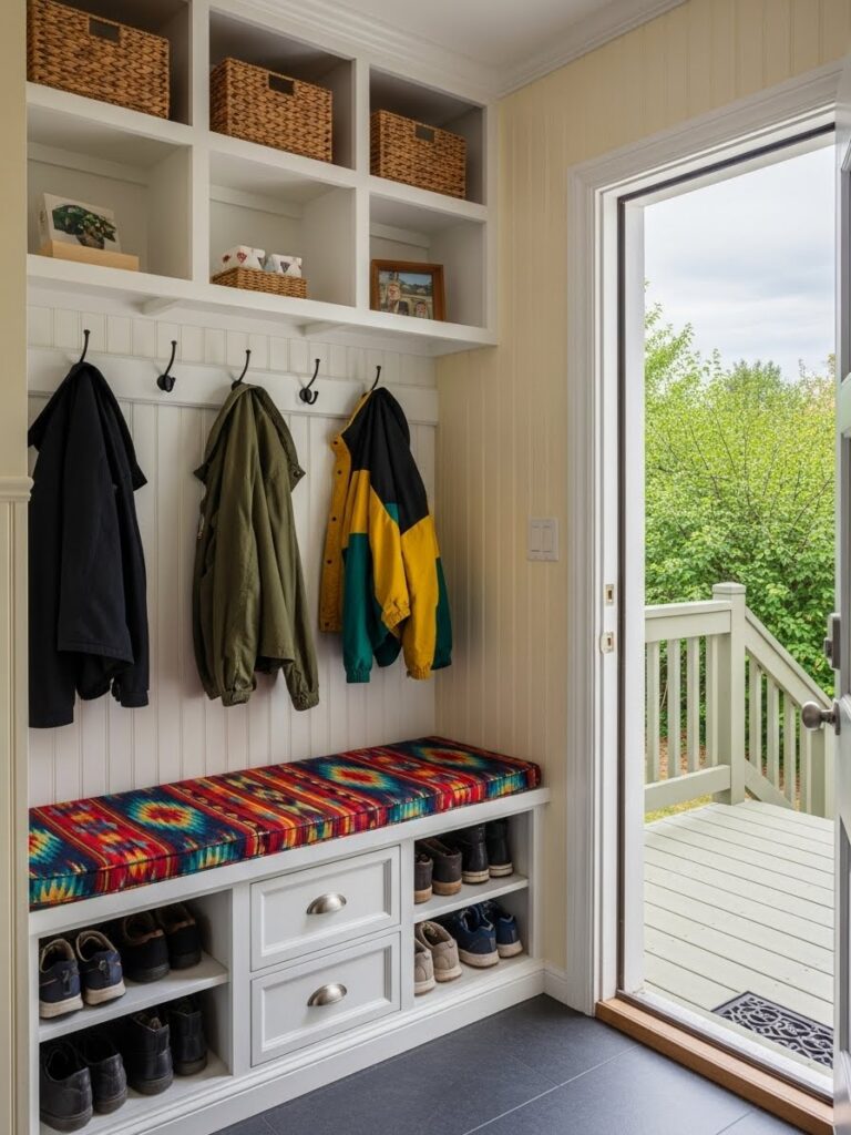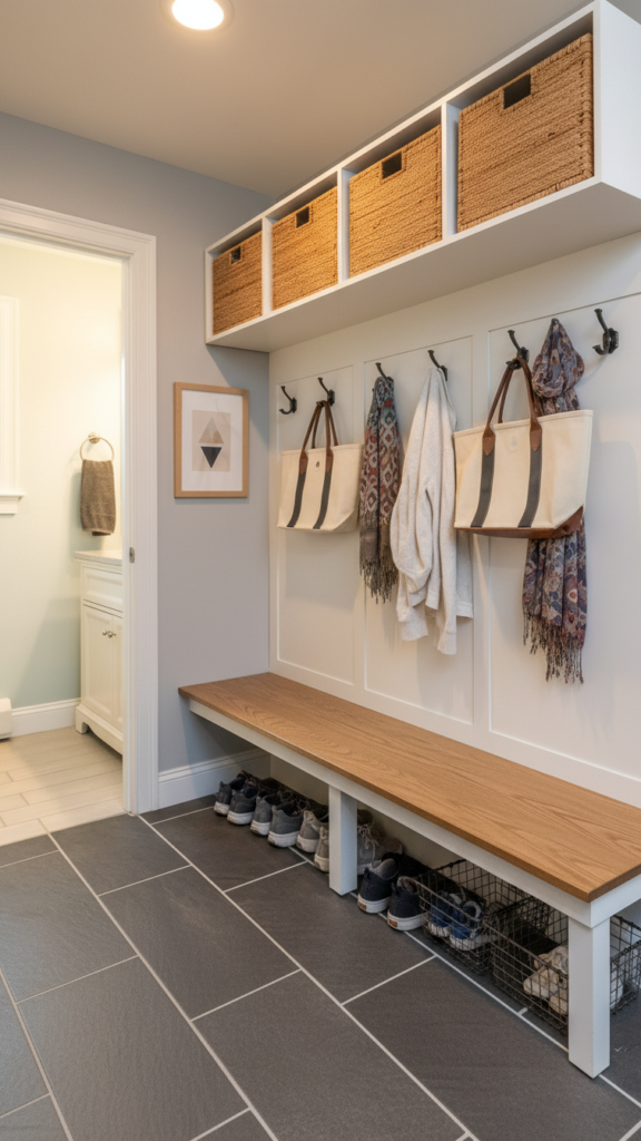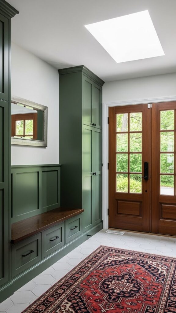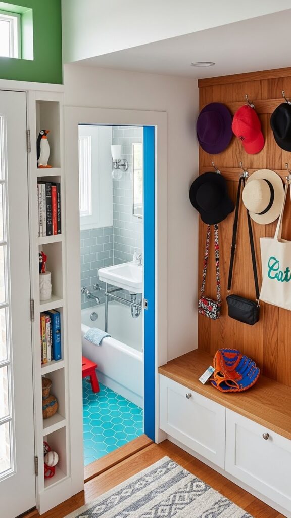 If you are renovating, consider using a different flooring material for the entryway “pad.” A hexagon tile or a bold patterned ceramic creates a designated “mudroom” area that is durable and easy to clean. This visual break from the living room’s hardwood or carpet defines the entry zone without the need for walls.
