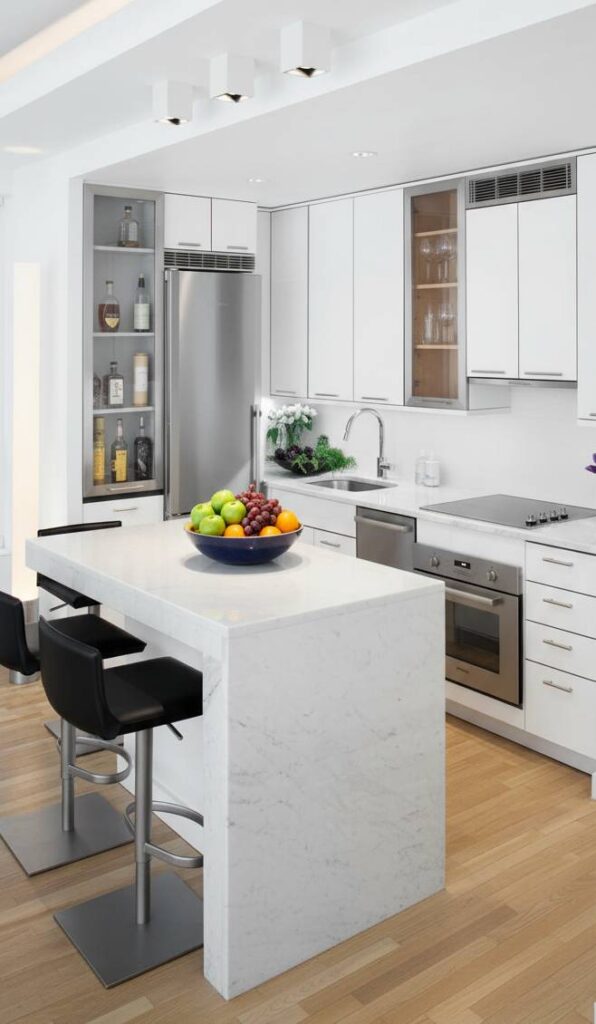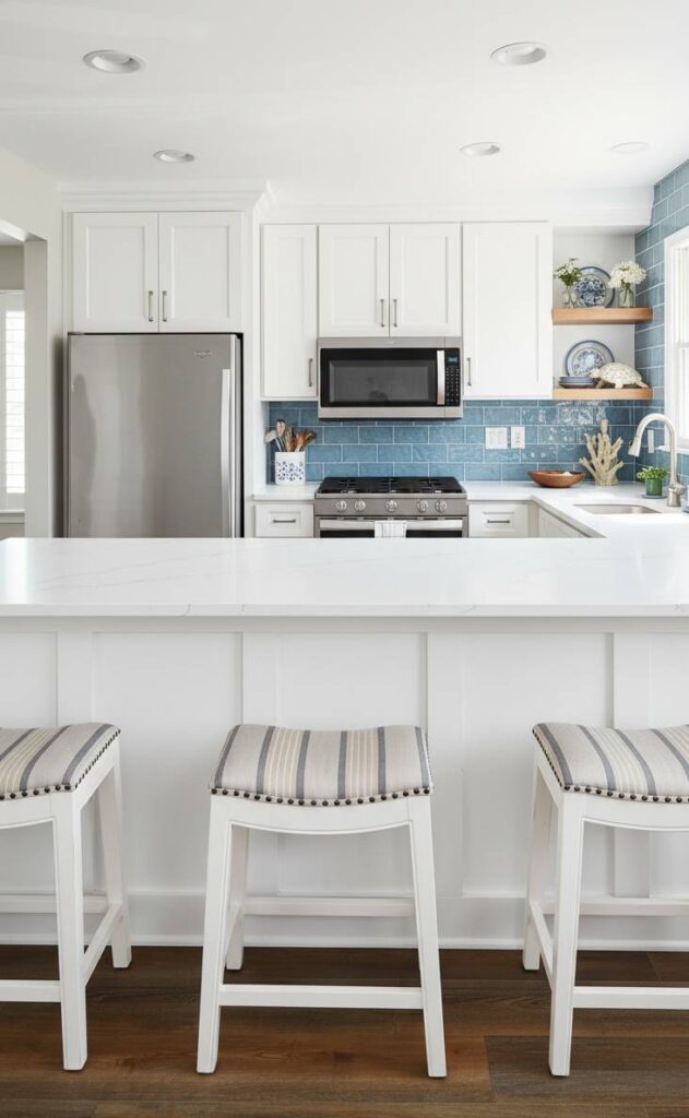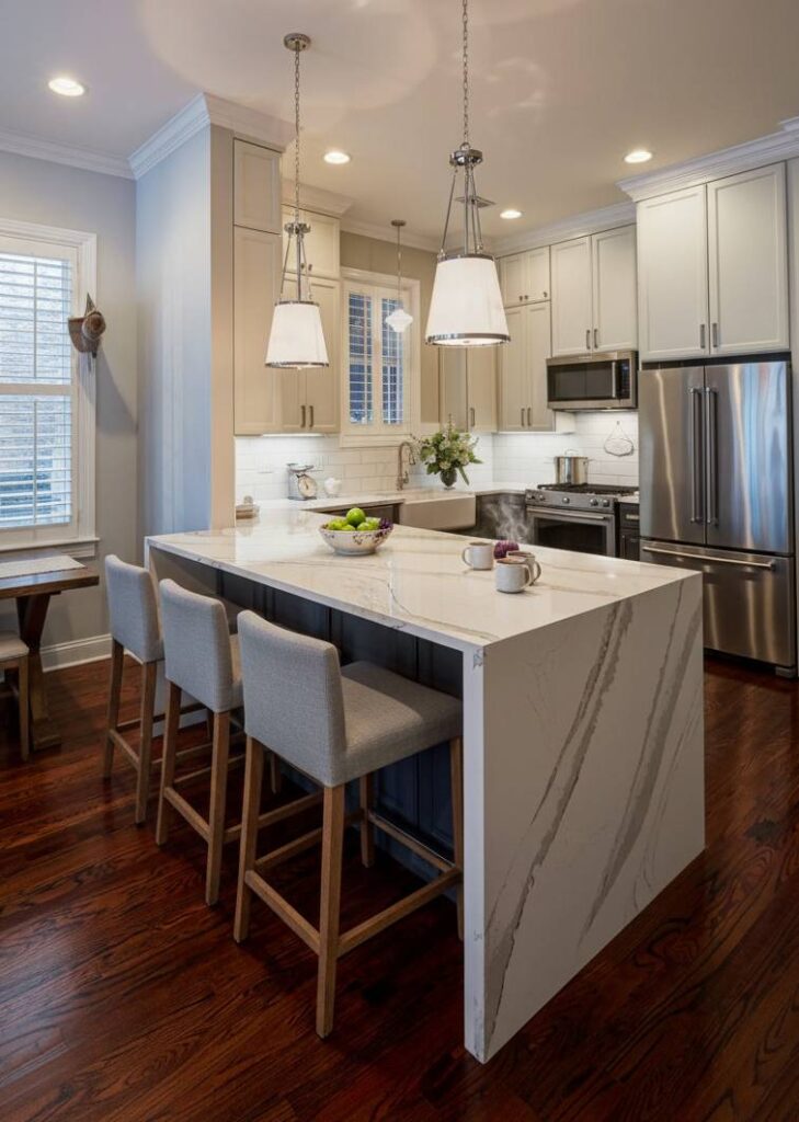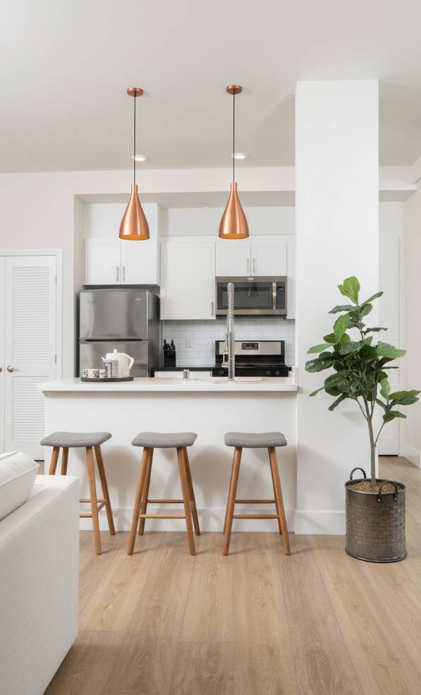 This works well in open-plan layouts. It connects the kitchen to the living area. It maximizes every inch.
